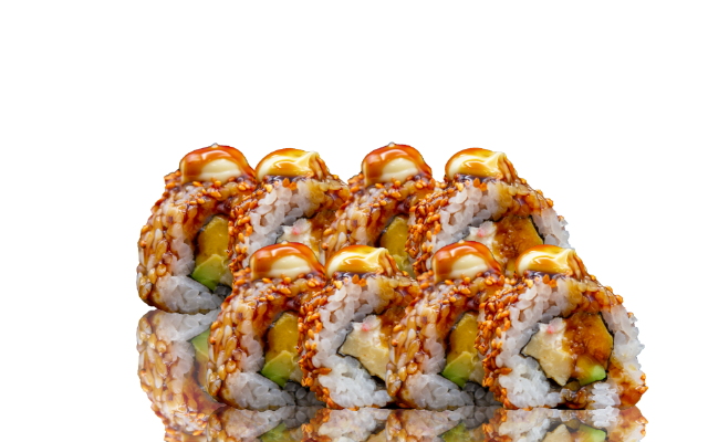 8 бр. - 260 гр. ориз, нори, Филаделфия , риба тон, сьомга, краставица, авокадо, скарида, срирача чили сос