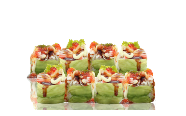 8 бр. - 260 гр. ориз, нори, авокадо, краставица , дракон сос, унаги сос, Яката майонеза /пожелание/