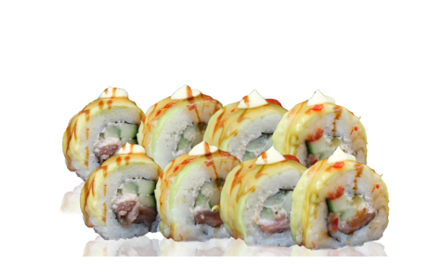 4 бр. - 140 гр ориз, нори, Филаделфия, краставица, авокадо, скариди, дракон, Яката майонеза