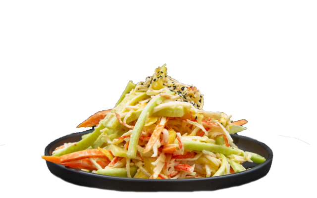 скариди, авокадо, сусам, сусамово олио, едамаме , дракон сос , ориз, манго